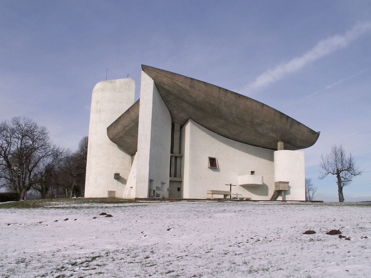4. 롱샹 성당: 르 코르뷔지에의 가장 유명한 작품 중 하나인 롱샹 성당은 전통적인 건축 규범을 초월하는 그의 능력을 보여주는 증거입니다. 파괴된 예배당을 재건하라는 의뢰를 받은 르 코르뷔지에는 영성과 모더니스트 혁신을 결합하는 비전을 가지고 이 프로젝트에 접근했습니다. 1954년에 완공된 롱샹 성당은 전통적인 교회 건축에서 벗어나 풍경의 윤곽을 모방한 물결 모양의 지붕이 있는 유기적인 형태를 특징으로 합니다. 전략적으로 배치된 개구부를 통한 빛의 상호 작용은 예배당 내에 초월적인 분위기를 조성하여 르 코르뷔지에의 공간과 형태에 대한 숙달을 보여줍니다.